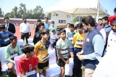 New Delhi : Union Minister for Youth Affairs and Sports, Anurag Singh Thakur inaugurated the unique Khelo India Rising Talent Identification (KIRTI) programme amidst much enthusiasm at the Sector 7 sports complex, in Chandigarh, on Tuesday. Aimed at school children between nine and 18 years, the nation-wide scheme will have two main objectives: to hunt talent from every nook and corner of the country and to use sports as a tool to curb addiction towards drugs and other gadgetry distractions. On a bright and sunny day, Shri Thakur emphasized that KIRTI was a dream of Prime Minister Narendra Modi to build a culture of sports and also create a cradle of talent that can win India medals at global competitions like the Olympics and Asian Games. KIRTI made a solid launch across 50 centres in India. Fifty thousand applicants are being assessed in the first phase across 10 sports, including athletics, boxing, wrestling, hockey, football and wrestling. KIRTI aims to conduct 20 lakh assessments across the country throughout the year to identify talent through notified Talent Assessment Centres. A scouting and training programme of this scale is a first in India and comes at a time when the nation wants to “become a top 10 sports nation in the world by 2036 and among the top five by 2047,” said Shri Thakur. Shri Thakur emphasized that youth were the building blocks of the nation and to achieve results in